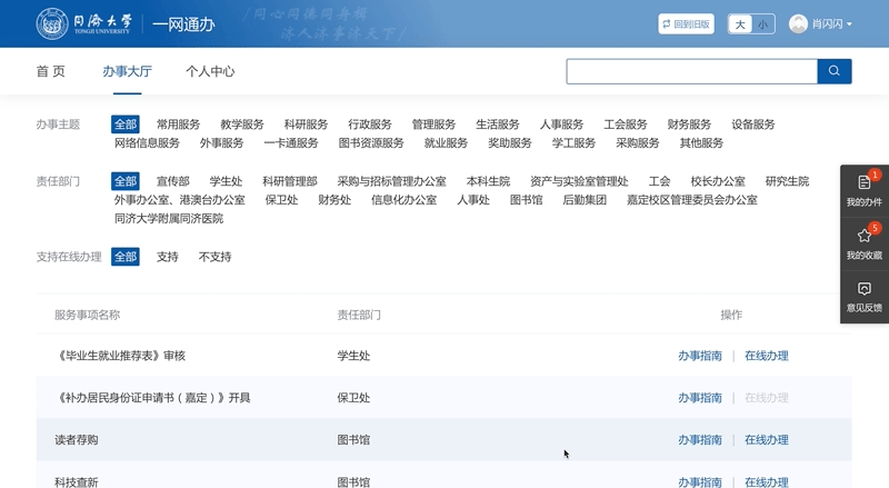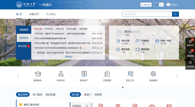 當天,作為“我為師生辦實事”主題實踐活動的一項具體舉措,同濟大學“一網通辦”開通試運行。校信息化辦公室負責人介紹,學校以“線上一網通辦,線下只跑一次”為目標建設“一網通辦”門戶,現已完成PC端開發(fā)部署并試運行(https://all.tongji.edu.cn),移動端開發(fā)正穩(wěn)步推進。 “一網通辦”作為學校為師生服務的窗口,在部門協同、師生共創(chuàng)的治理生態(tài)下,緩解系統(tǒng)小散亂現象,提升師生用戶體驗,助推實現“一網通辦提升信息服務能力,一網統(tǒng)管提高運營管理能力”目標。“一網通辦”門戶具有服務事項展示、在線服務辦理、師生意見反饋、服務運營情況監(jiān)測等功能,已梳理并遷移服務事項210余項,涉及18個部門,新建新進教師入職、高級專家延聘等在線服務近10項,還整合了主要部門的網站和信息系統(tǒng)。學校將持續(xù)梳理明確工作機制,同時探索基于人工智能、超自動化的主動服務,構建師生共創(chuàng)生態(tài),推動“一網通辦”成為“一網好辦”。