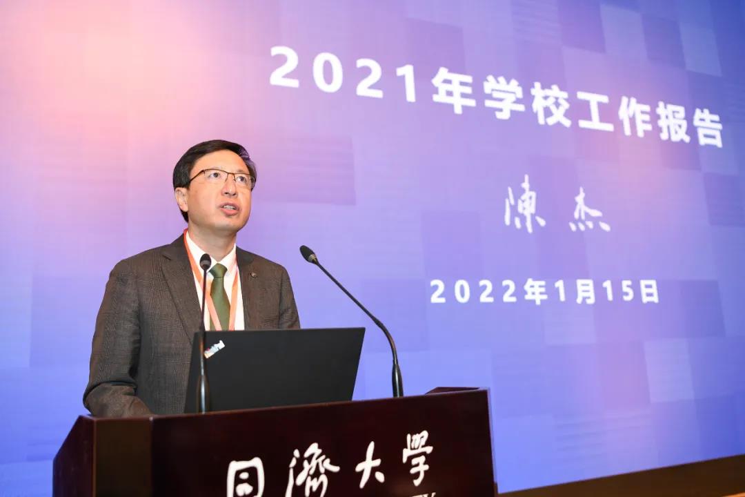 大會聽取了陳杰所作的《同濟(jì)大學(xué)2021年學(xué)校工作報告》。陳杰報告了學(xué)校2021年的工作情況和2022年的主要工作。他向一年來為學(xué)校發(fā)展出謀劃策的各位代表、向一年來為學(xué)校事業(yè)發(fā)展辛勤付出的廣大教職員工們表示誠摯的感謝。陳杰表示,過去的一年,學(xué)校以習(xí)近平新時代中國特色社會主義思想為指導(dǎo),貫徹落實“三新一高”戰(zhàn)略要求,全面落實立德樹人根本任務(wù),以一流黨建引領(lǐng)中國特色世界一流大學(xué)建設(shè),引領(lǐng)全校師生員工胸懷“國之大者”,大力弘揚“同濟(jì)天下、崇尚科學(xué)、創(chuàng)新引領(lǐng)、追求卓越”的新時代同濟(jì)文化,持續(xù)推進(jìn)學(xué)校治理體系和治理能力現(xiàn)代化,統(tǒng)籌抓好疫情防控常態(tài)化和學(xué)校改革發(fā)展,奮力實現(xiàn)學(xué)校“十四五”發(fā)展規(guī)劃開好局、起好步,推動中國特色世界一流大學(xué)建設(shè)邁上新臺階。他指出,面向新的一年,我們要團(tuán)結(jié)帶領(lǐng)全校師生,弘揚偉大建黨精神,聚焦主要任務(wù)、抓好重點工作,做好巡視“后半篇文章”,持續(xù)加強(qiáng)黨的全面領(lǐng)導(dǎo)和黨的建設(shè),以守正創(chuàng)新推進(jìn)高質(zhì)量發(fā)展,加快構(gòu)建同濟(jì)特色高質(zhì)量教育教學(xué)體系,深入推進(jìn)治理體系與治理能力現(xiàn)代化建設(shè),不斷加快中國特色世界一流大學(xué)建設(shè)步伐,以更加優(yōu)異的成績迎接黨的二十大勝利召開。