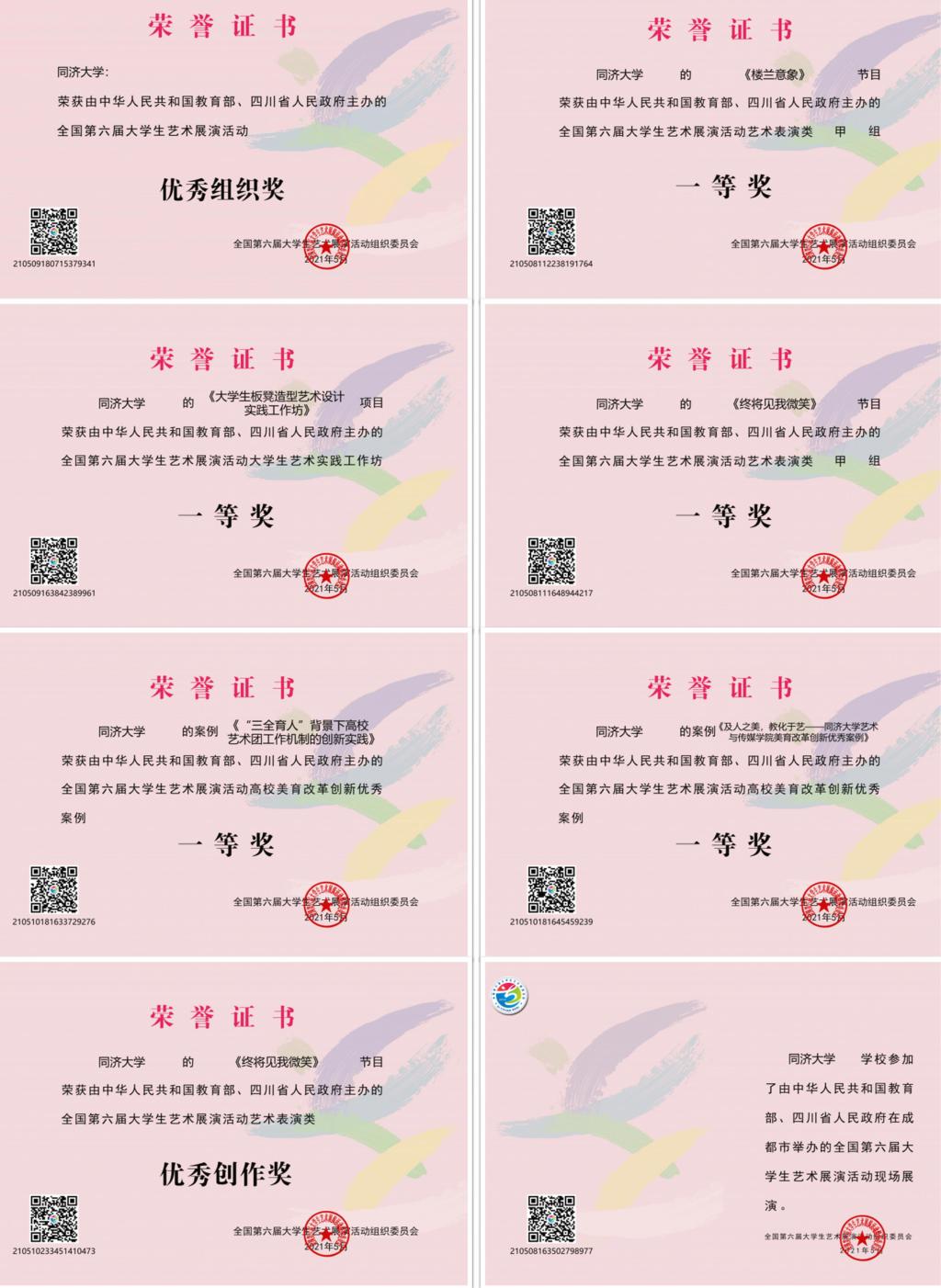 校團委負(fù)責(zé)人表示,近年來,同濟大學(xué)一直注重開展美育工作,完善第二課堂教學(xué),創(chuàng)新藝術(shù)實踐形式,打造校園藝術(shù)精品節(jié)目,繁榮校園藝術(shù)文化,搭建校內(nèi)、校際的文化交流平臺,培養(yǎng)具有藝術(shù)修養(yǎng)與文化底蘊的時代新人。同濟人在本次展演中的精彩亮相,是學(xué)校新時代美育工作成果的展現(xiàn),也是對“以美育人、以美化人,以美培元”理念的深化。本屆大藝展是教育系統(tǒng)步入“十四五”、立足新發(fā)展階段高校美育面貌的全新亮相,是為建黨百年獻禮的藝術(shù)盛會。同濟師生堅持以美育人、向美而行,立大志、明大德、成大才、擔(dān)大任,以昂揚向上的精神風(fēng)貌和奮發(fā)有為的理想追求為建黨100周年獻禮,讓青春在不懈奮斗中綻放絢麗之花。