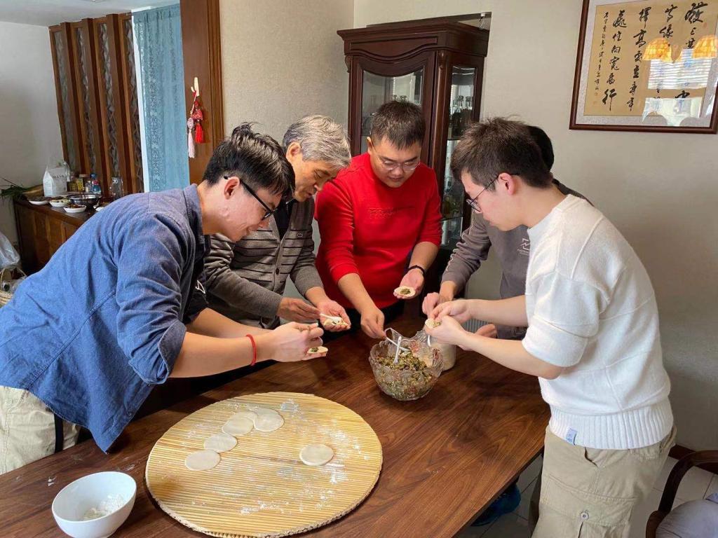 今年春節,留校學生在老師家包餃子
