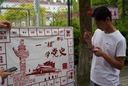 黨史故事連連看、一“棋”學黨史、紅色地圖版“大富翁”……4月20日中午,在我校四平路校區(qū)、嘉定校區(qū),學生們搭起百米紅色市集,擺開攤位,通過游戲互動,讓黨史學習“活”起來。